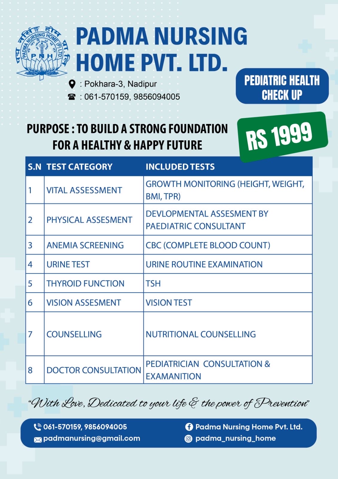 PEDIATRIC HEALTH CHECK UP PACKAGE